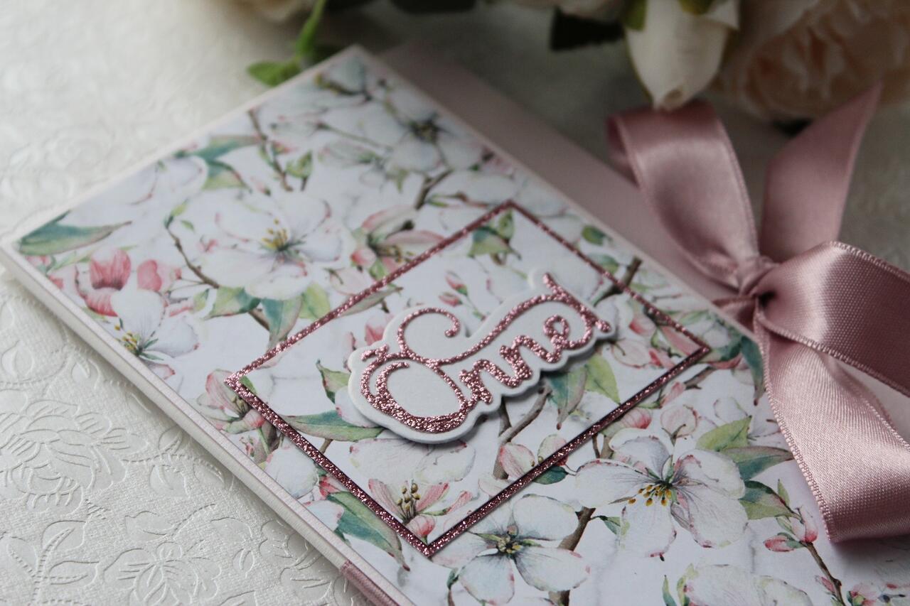 Kasutatud on roosat glitter läikega kartongi, disainpaberit ja heleroosat metallikläikega kartongi.